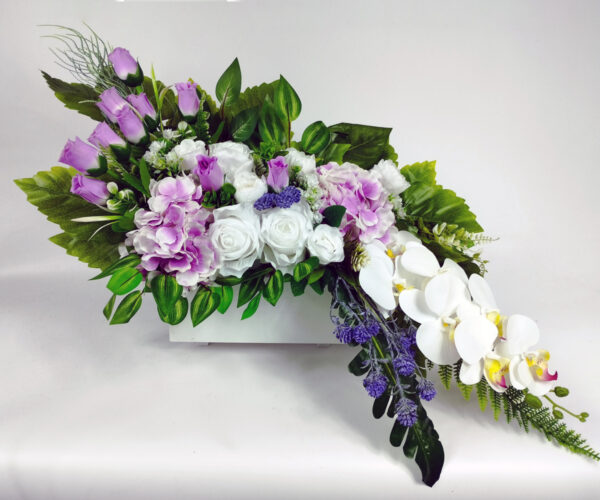 Komplet Arioleta to kwiecista i wiosenno-letnia kompozycja na cmentarz. Mnogość dodatków, kwiatów i wielu rodzaju liści nadaje stroikowi uroku i naturalnego wyglądu wiązanek z wieloma…